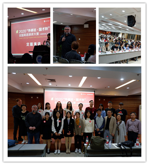 【本网讯】9月29日,2020“外研社•国才杯”全国英语演讲大赛初赛在新莆京3969航空港校区学术报告厅顺利举行。本次比赛由外语教学与研究出版社、中国外语测评中心、北京外研在线数字科技有限公司共同主办,新莆京3969外国语学院承办。外国语学院书记杨昊,院长黄驰,副院长卢婕参加了比赛,外国语学院教师吴玉华、杨云安、周杰、张舒、孙假梦、吴倩、外教John、Brendan担任了本次比赛的评委。