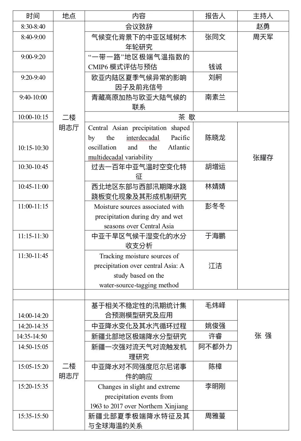 中亚内陆干旱区是连接“一带一路”中国和欧洲的重要通道,是气候变化的敏感区和脆弱区,受气候变化影响,中亚国家之间以及与中国之间的生态环境与水资源的矛盾正逐步加剧。本次会议围绕中亚地区降水的变化机制和数值模拟展开研讨,加深我们对中亚降水异常形成机制的理解。 请各位师生踊跃参加。