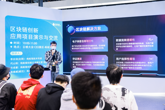 【本网讯】11月3日上午,为期三天的2022年蚂蚁集团云栖大会在杭州市云栖小镇开幕。新莆京官网区块链产业学院区块链工程专业学生团队代表代山琅受蚂蚁链邀请参加峰会,参与蚂蚁区块链创新应用项目路演,并在蚂蚁链智能合约编程挑战赛中以最短时间完成赛题,创造最新纪录。